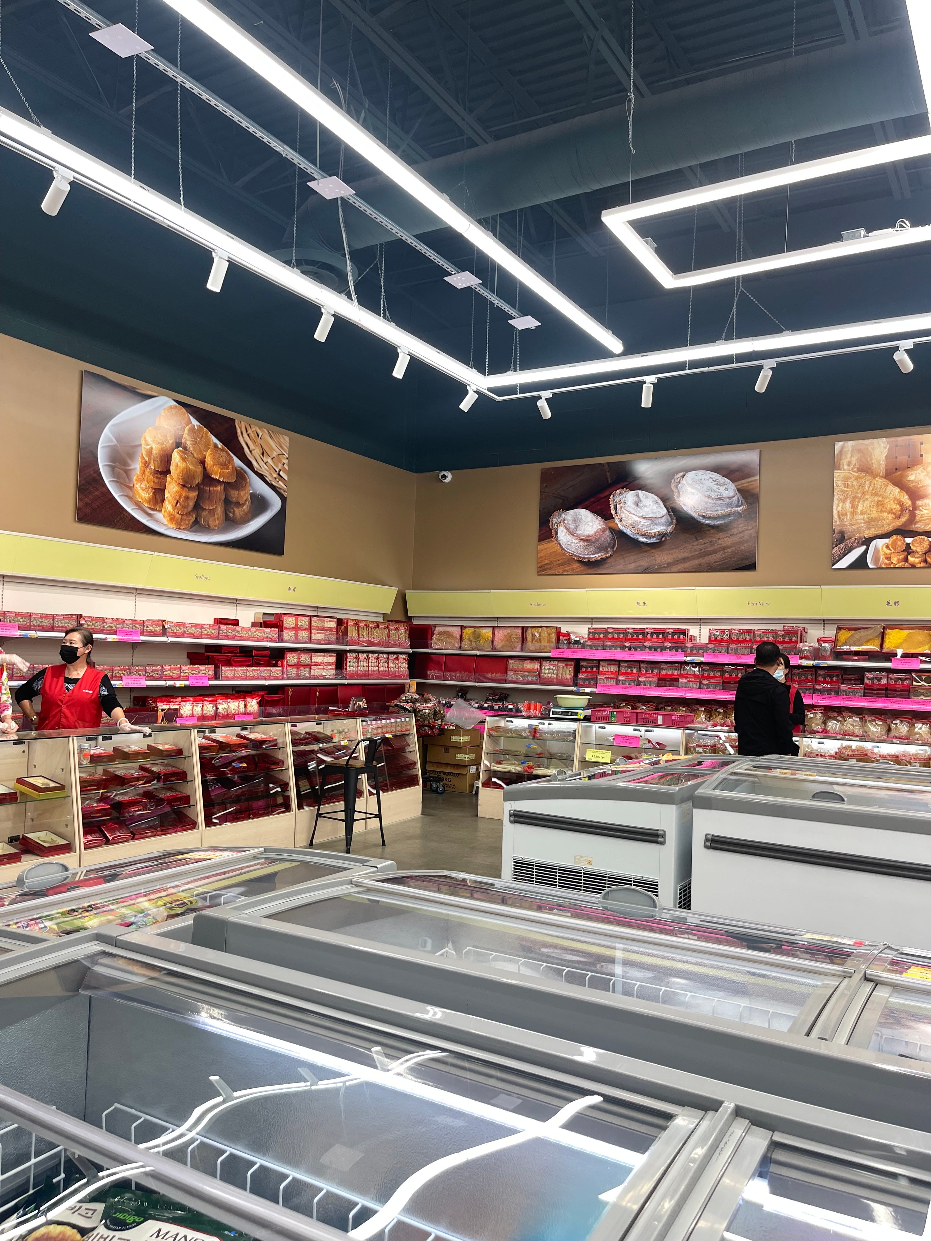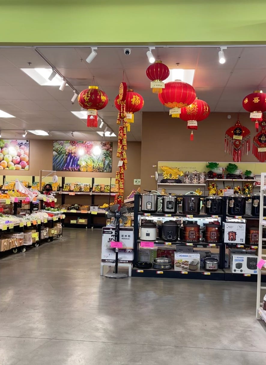 In a balanced fashion, TS Emporium has other groceries too. An aisle over from the soup packets sit single serving cups of mango pudding, peanut cookies, rice noodles, jars of pickled vegetables and chili crisps. The produce section is lush with stemmy greens, tubs of lotus root, and thin skinned melons. Rice cookers, teapots, and pink fuzzy slippers live at the back of the store. I invest in a pair.