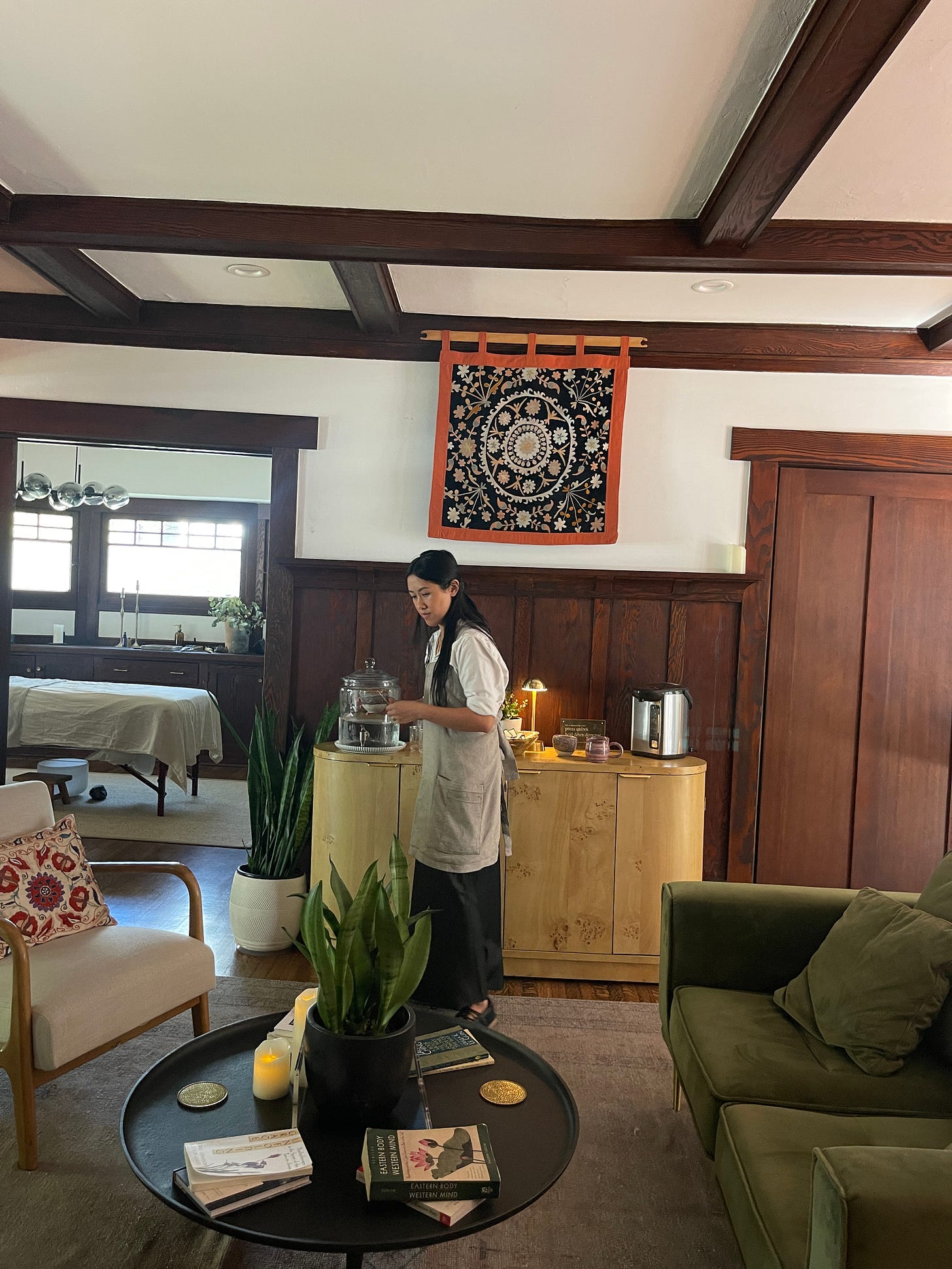Later, I visit Loo’s clinic, in a storied Pasadena craftsman. She brews me a cup of tea and we sit down to chat. She asks me a series of questions about my immune system and sleep habits, if I feel connected to the climate in LA since I’m from the East coast, and if I have any grounding practices. Her words are precise and rhythmic, filled to the brim with intention. I tell her about my spoon anxiety, my desire to fix something that I don’t know the scope of, and the barrage of ways I’m being told to do that. She nods.